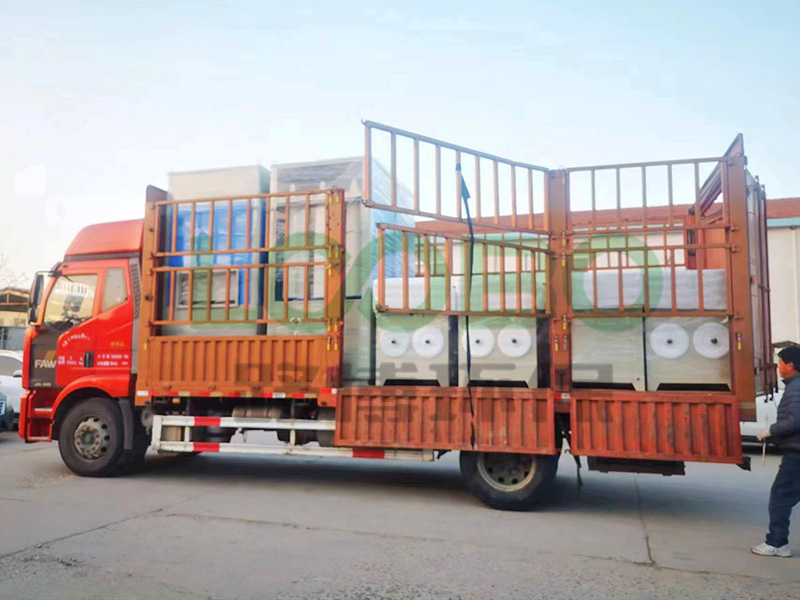 打磨除塵工作臺(tái)及多濾筒除塵器裝車發(fā)貨。